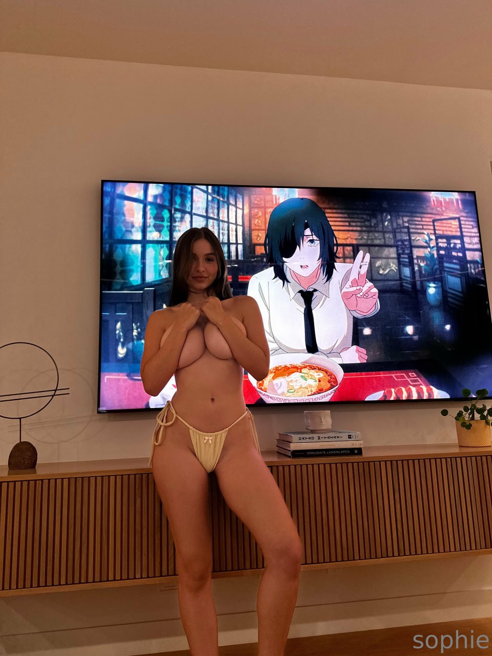 Laurel Jeune, nội y đỏ, nằm trên giường đen